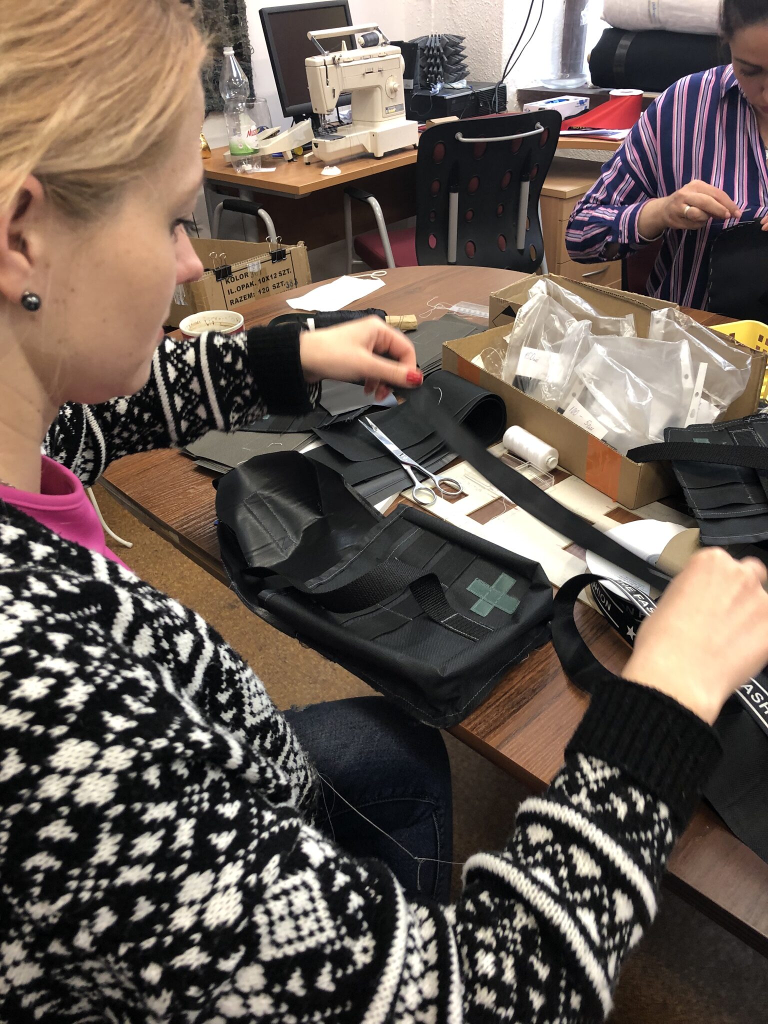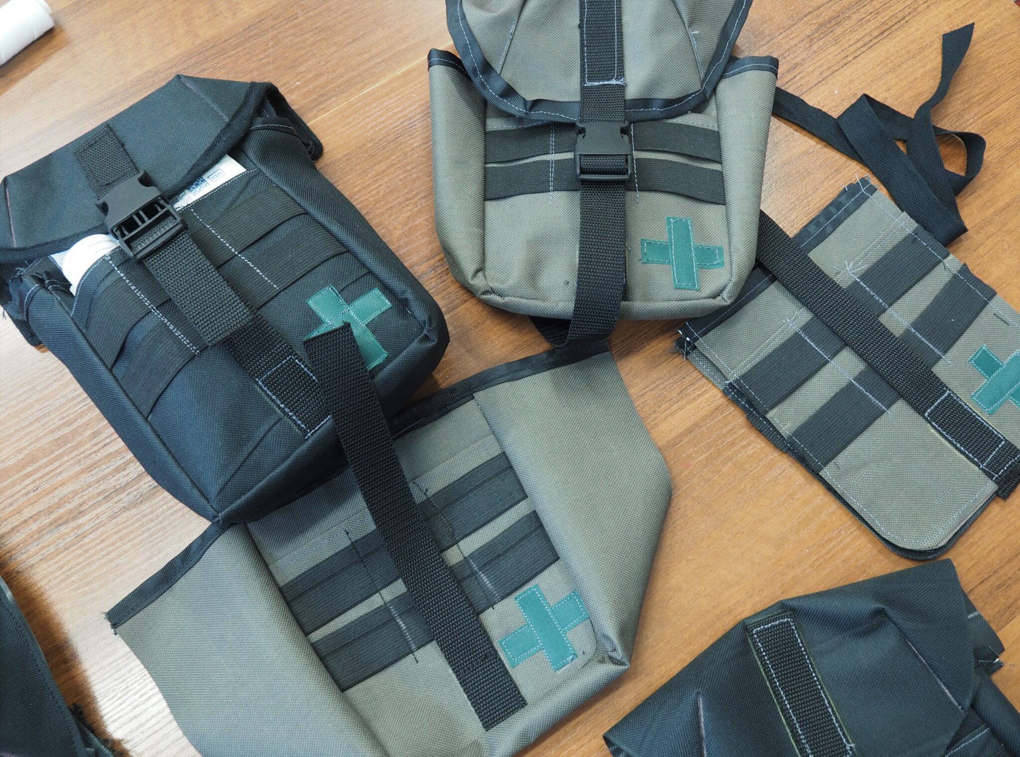 Przekazane materiały sprawiły, że podjęliśmy wyzwanie uszycia 100 apteczek, co początkowo było chyba jednak trochę ponad nasze możliwości Dziś pomysł jest już możliwy i realny do wykonania dzięki m.in. niezwykłemu zaangażowaniu w pracę dzielnych uchodźczyń z Ukrainy,członków i przyjaciół Stowarzyszenia, którzy przekazali i wyremontowali stare maszyny. Teraz wiemy, że to nie będzie koniec. Udoskonalamy sam projekt i nasze umiejętności, dostosowujemy wykrój do indywidualnych potrzeb i indywidualnej zawartości. Spieszymy się z pracą by pierwsza wysyłka była jak najszybciej gotowa. Nadal potrzebujemy pomocy w pozyskaniu wyposażenia i środków na realizację naszych działań, czekamy na program, ale jeśli ktoś byłby zainteresowany pomocą zapraszamy do kontaktu.