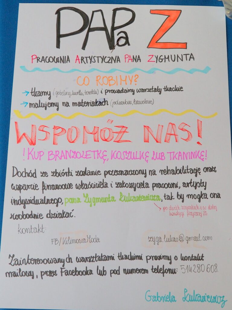 Wspólne wydarzenie Stowarzyszenia „Dla Rodziny”, Centrum Edukacji Łamigłówka – Nauka to zabawa, Pracowni Artystycznej PAPaZ oraz mieszkańców Podwórka przy ul. Piotrkowska 38. Zorganizowane w ramach inicjatywy społecznej na rzecz społeczności lokalnej przy wsparciu programu „Moje Miejsce na Ziemi” prowadzonego przez Fundację Orlen. Dziękujemy: Fundacja Orlen, Kawiarnia Miriam, Firma Ziaja, Firma Rossman, Firma IPSOUND, Targowisko Zielony Rynek pl. Barlicki, Łódzki Sejmik Osób Niepełnosprawnych, JUST LODZ, „Prześwity Bramowe” Ulicy Piotrkowskiej, Animacje Podwórkowe – Katarzyna Grambo