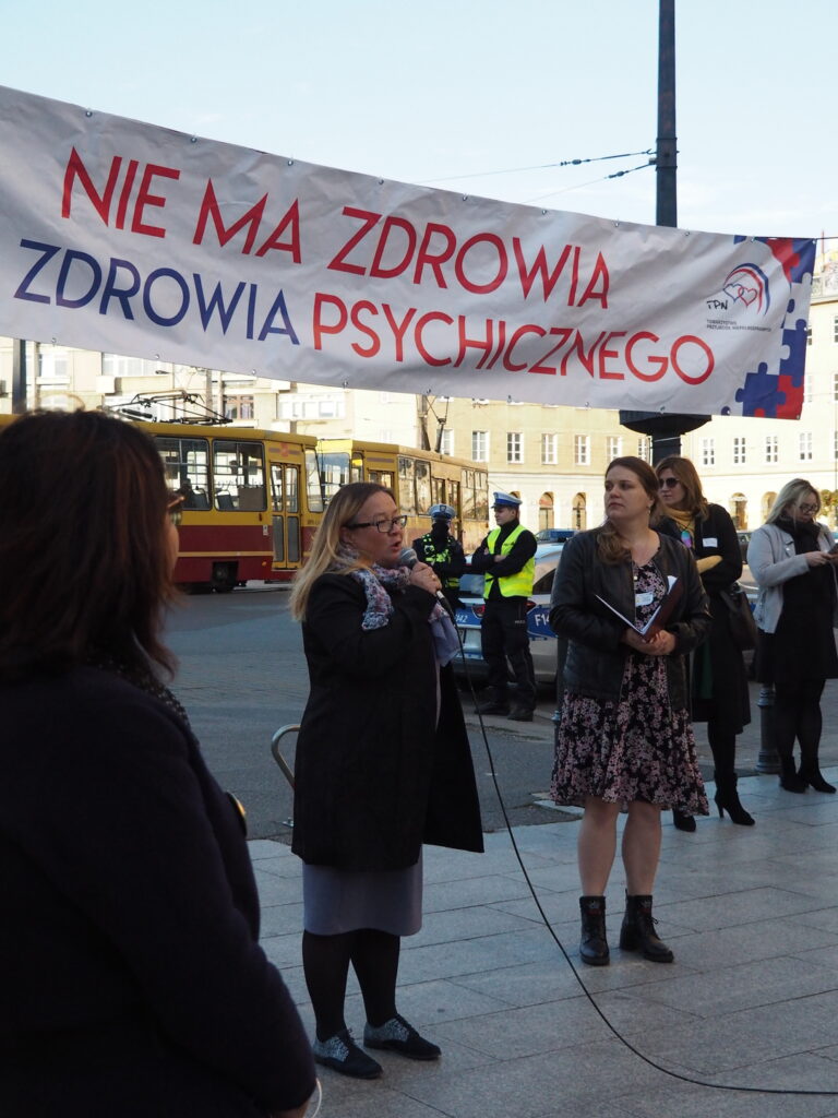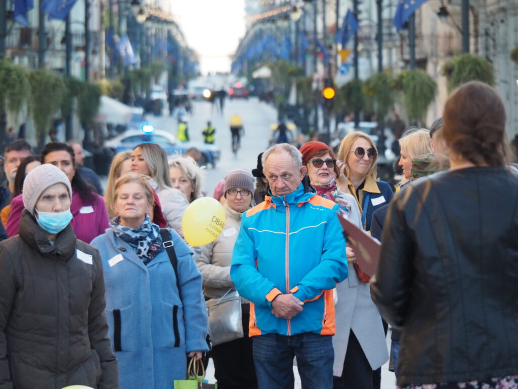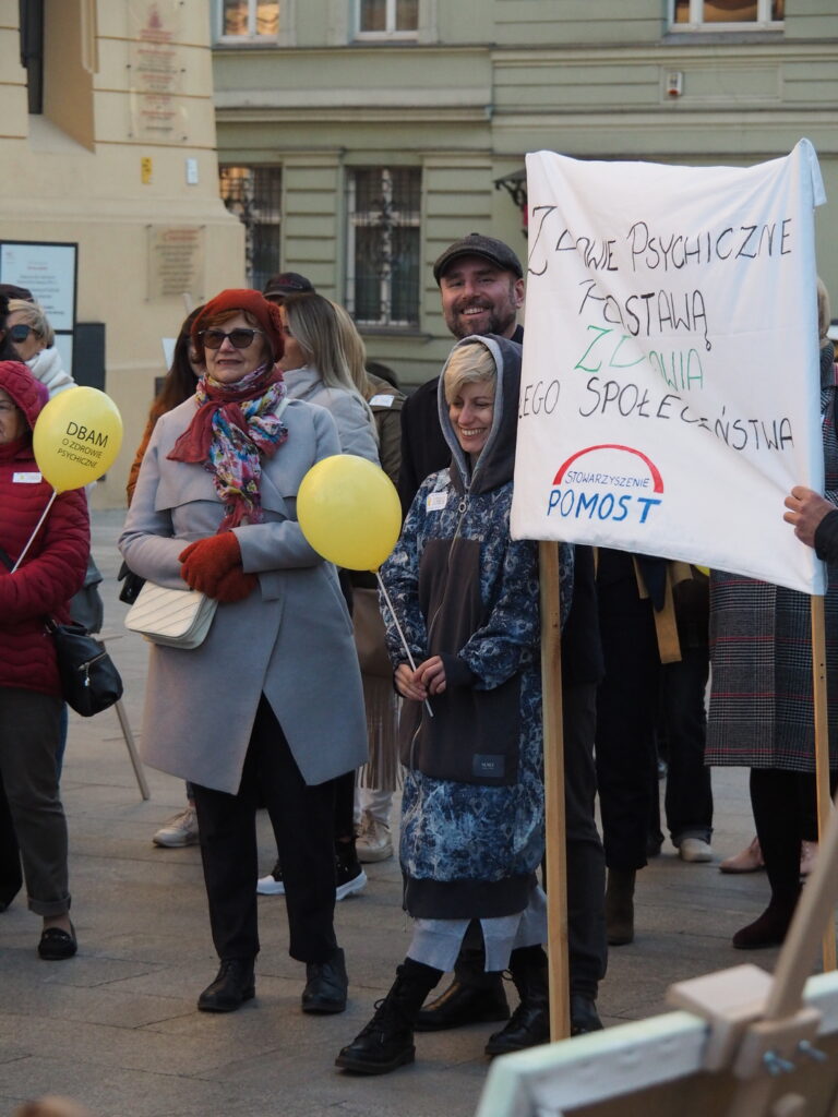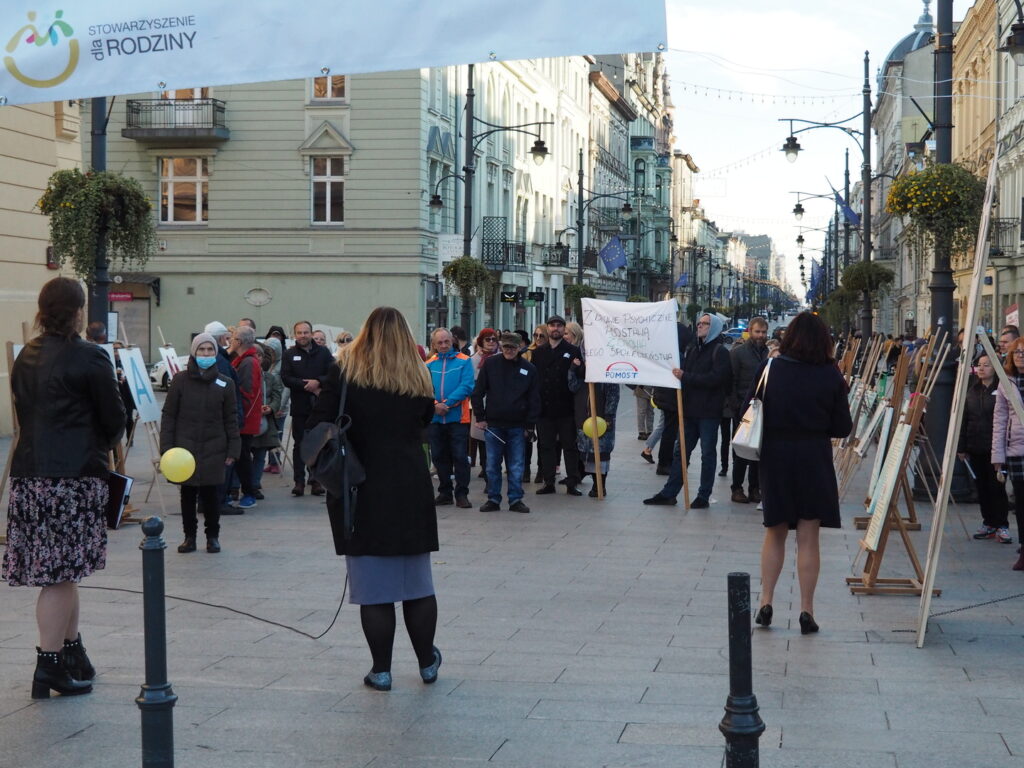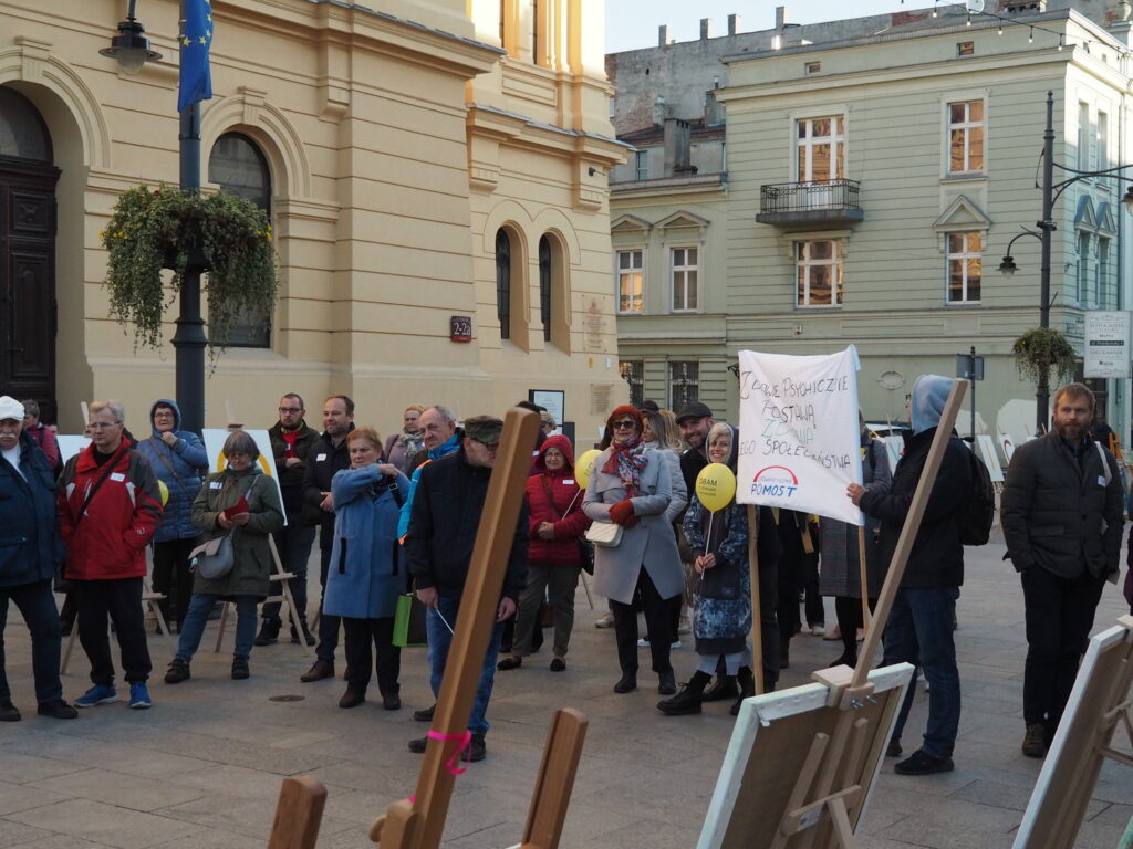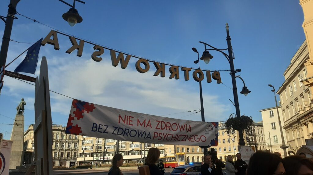 10 Października, czyli w Dniu Zdrowia Psychicznego spotkaliśmy się na popularnej i lubianej ulicy Piotrkowskiej pod wspólnym hasłem “Dbam o Zdrowie Psychiczne”. Wspólnie z mieszkańcami miasta, przedstawicielami urzędów, instytucji i władz Łodzi wzięliśmy udział w społecznym happeningu poświęconym dbałości o zdrowie psychiczne. W tym roku szczególnie chcieliśmy zwrócić uwagę na zagrożenia zdrowia i profilaktykę zdrowia psychicznego wśród dzieci i młodzieży. Statystyki wskazują na powszechność problemów zdrowia psychicznego, które w przyszłości mogą dotknąć nawet co 4-tą osobę. Podczas happeningu podkreślono, że nie można bagatelizować cierpienia osób chorujących, a problem chorób psychicznych coraz częściej dotyczy dzieci i młodzieży. Głośno mówiono o tym by nie bać się prosić o pomoc, korzystać z profesjonalnej pomocy terapeutów, lekarzy psychiatrii. Promowano sposoby dbania o zdrowie psychiczne: odpowiedni sen, higiena rytmu dobowego, aktywność fizyczna, pasje i zainteresowania, zdrowe odżywianie, dbanie o relacje z rówieśnikami, rodzinę, wiara. W leczeniu z pewnością pomaga i jest niezbędny kontakt z lekarzem, dotęp do najnowocześniejszej farmakoterapii ale pomocna będzie także arteterapia a nawet kontakt ze zwierzętami. .